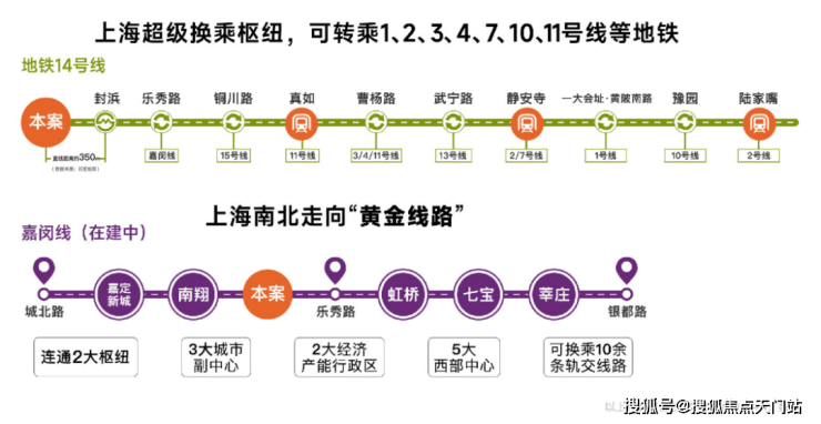 本身地块位于14号线封浜站约350m左右。要知道,这可是目前 嘉定500w级新盘中距离地铁最近的,没有之一!
