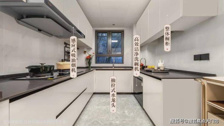 臻选方太(或同档次品牌)洗碗机、燃气灶等,安全耐用,抽拉式水龙头,轻松冲洗水槽角落,接入3M、霍尼韦尔(或同档次品牌)净水机,保障全家饮用水的健康安全
