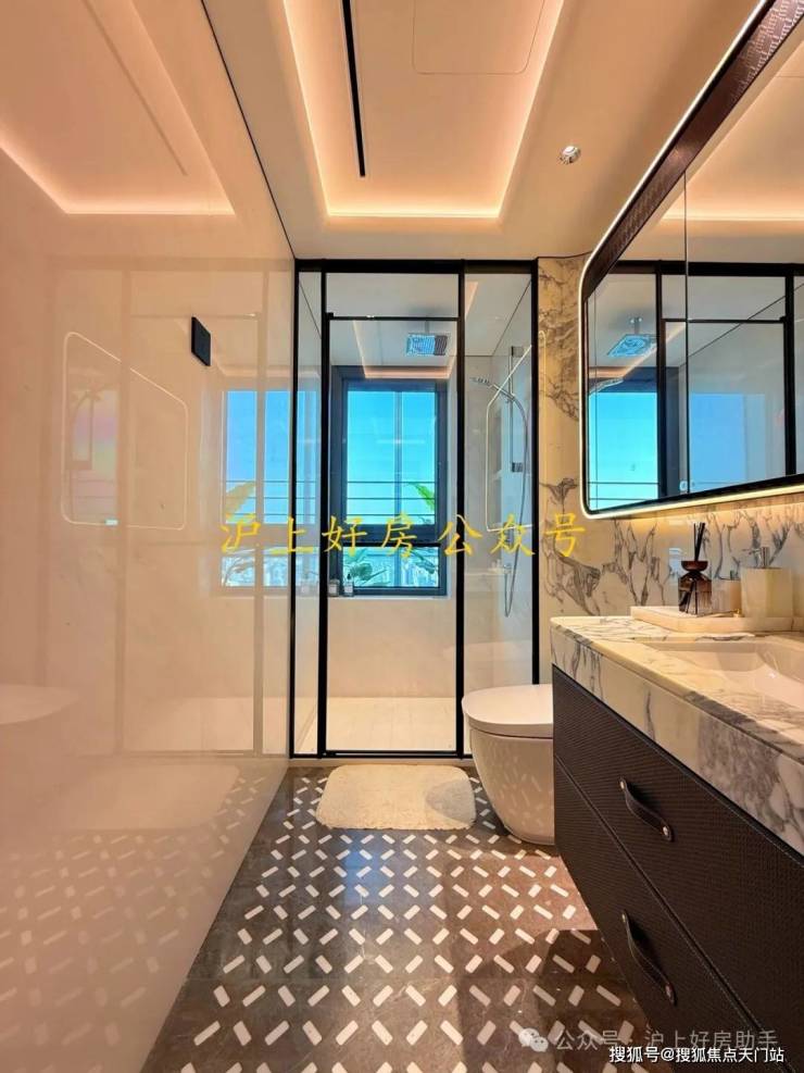 颜值 MVP :四分离卫浴设计,实现独立洗漱台、卫生间、淋浴间、洗衣区互不打扰,晨起高峰也能从容有序。家政空间藏于其中,解放了阳台,让其更多承载尺度观景功能。