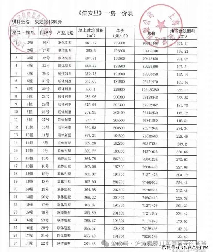 别墅一房一价表: