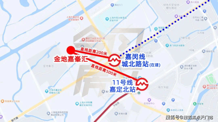 约500米11号线嘉定北站(已开通),直达徐家汇、前滩等城市节点