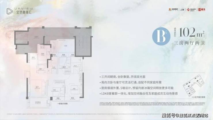项目主力在售建面约89-102㎡3房。分户型具体来看: