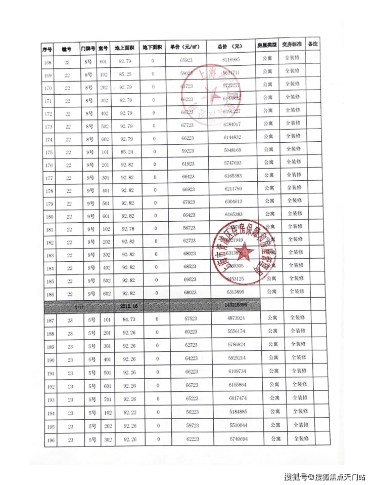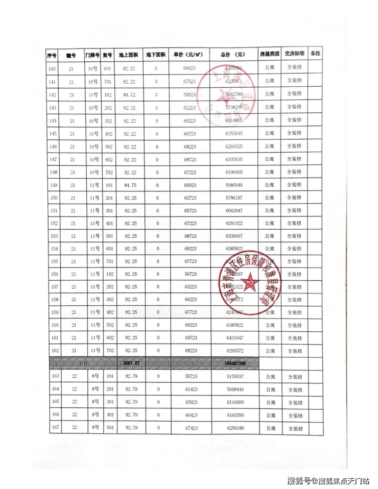 一房一价表: