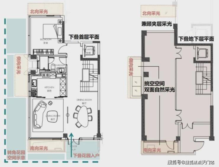 而且,无论上叠还是下叠,在南北两个转角的主空间,全部做到了全面积转角开窗。这样通透的视觉感受,也只有叠墅这一种产品可以做到!