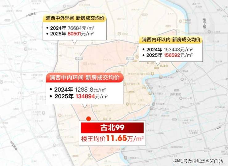 再看环线位置:古北99步行到内环仅约1.3公里,均价11.65万/㎡;而长宁天山项目贴着中环,首开13.88万/㎡;长宁西郊项目临近外环,联动价也要11.8万/㎡。