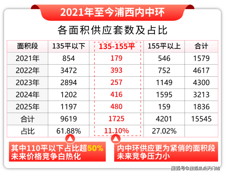 2021年至今,内中环约135-155㎡户型供应仅占比约11%。