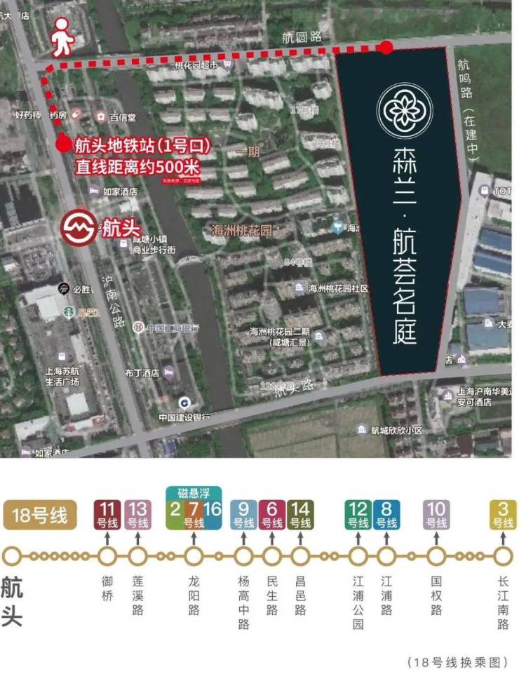 18号线航头站1号口,直线距离森兰·航荟名庭约500米,像这样适当的距离,既能真正地减少通勤时间,又避免了地铁运行所产生的震动和噪音干扰。 不需要社区班车、代步车、没有最后一公里的出行困扰。
