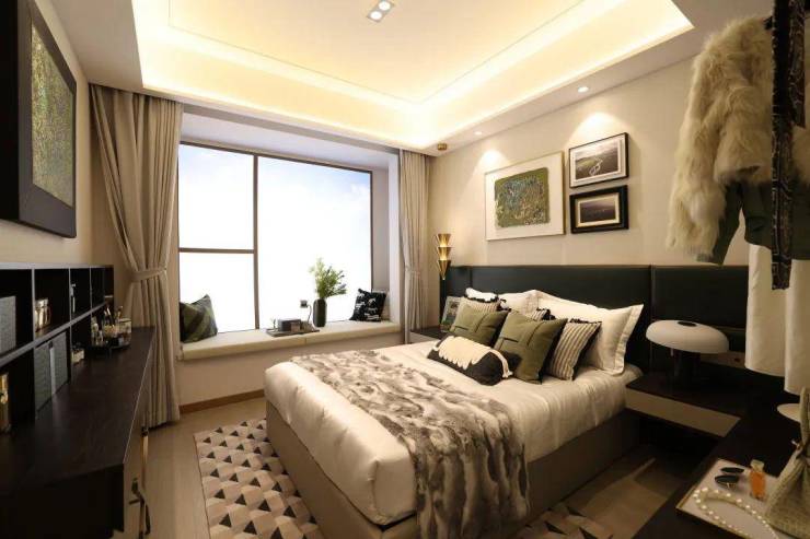 3、南向主卧打造了带衣帽间的酒店式套房,舒适感和品质感双重加持。
