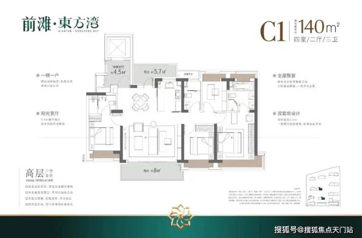 如果有进阶改善置业需求的客户,可以选择 建面约140/175㎡4房2厅3卫!
