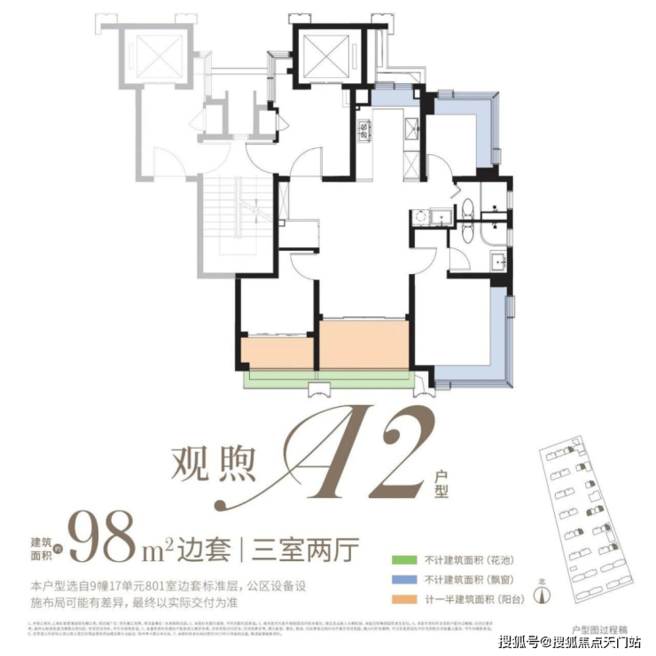约98㎡3房:类一梯一户、内部飘窗为轻质墙板,后期可自行拓展!双阳台+景观花池是核心亮点(市面双阳台户型起步多为约110㎡),整体附赠约23㎡,是罕见的高实得率精致户型。
