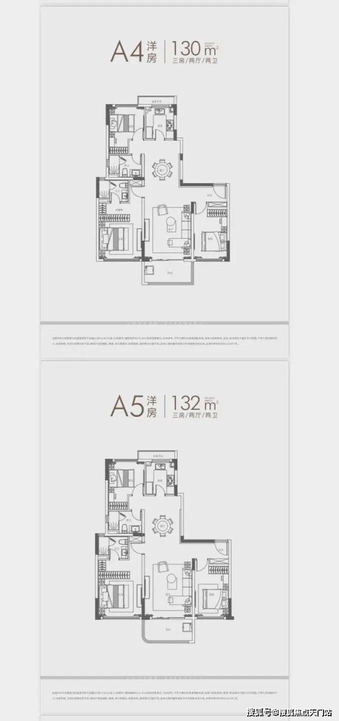 ①、建面约120㎡3房: