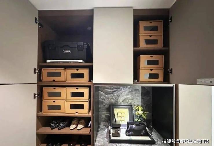 衣柜巧用门后垂直空间,设置大量挂衣区与双面柜体,实现空间翻倍;主卫镜柜分层设计搭配分隔盒收纳护肤品,地柜采用抽屉式设计并内置防水收纳盒,分类存放清洁用品,细节满满。