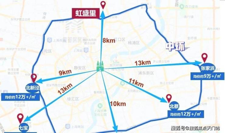 但到人民广场的距离却更远了!例如位于上海南部、浦东三林板块的项目,距人民广场直线距离约10公里,价格却要12万+/㎡,还有位于上海西面的北新泾项目、上海东面的北蔡项目等等。