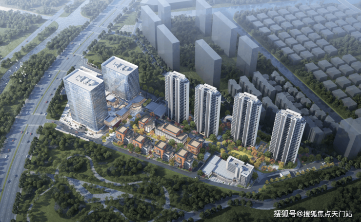 这7栋低层应该不是住宅。因为从之前的彩平图来看,4栋高层和北侧的低层建筑,地面铺装有明显不同。在综合技术经济指标中,显示还有“花园办公”,大概率说的就是这几栋商墅。另外,地面上还有十几个停车位,非人车分流。