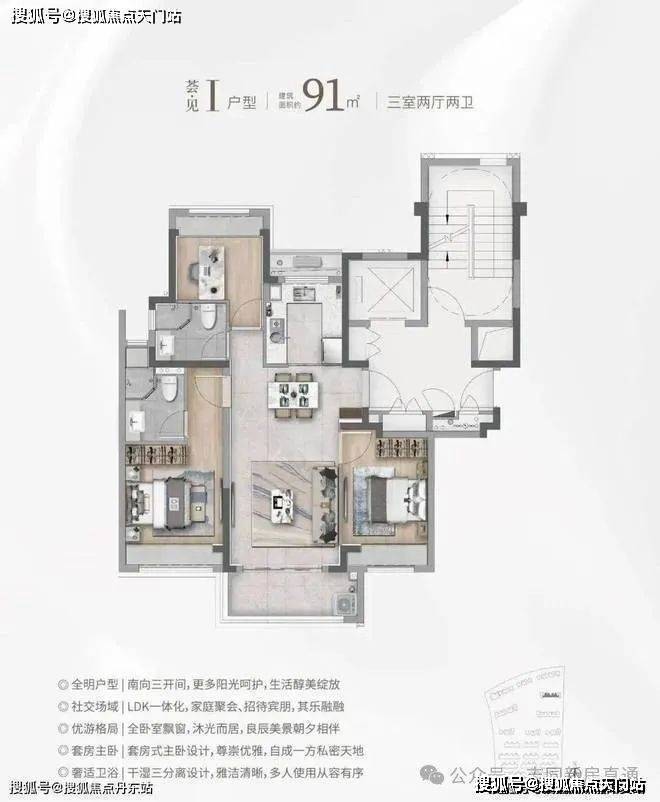 ①建面约91㎡3房2厅2卫:总价400万级预算错过不再有的高性价比之选!