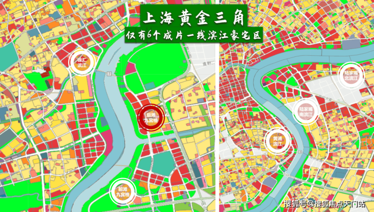 数据显示,上海黄浦江中环内核心位置,仅有6个成片的一线滨江豪宅区。