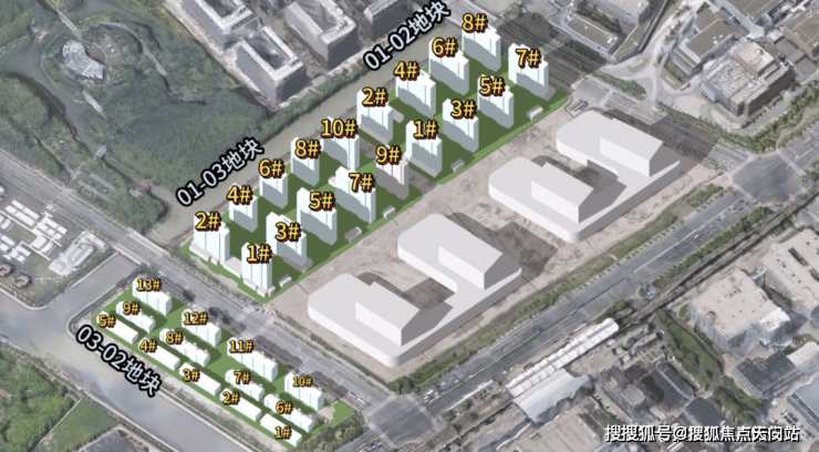 01-03地块,拟建9栋17-18F高层住宅、1栋20F保障房以及若干社区配套用房,规划可售住宅约472套,将推出建面约89-140㎡3-4房;