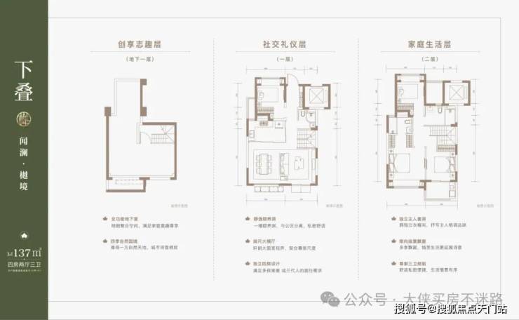 建面约137㎡下叠,四房两厅三卫全能格局,非常适合二娃家庭以及三代同堂。