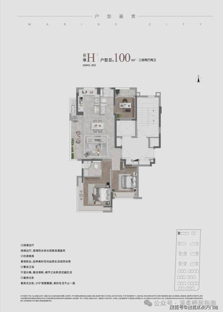 比如高层建面约100㎡的3房户型!