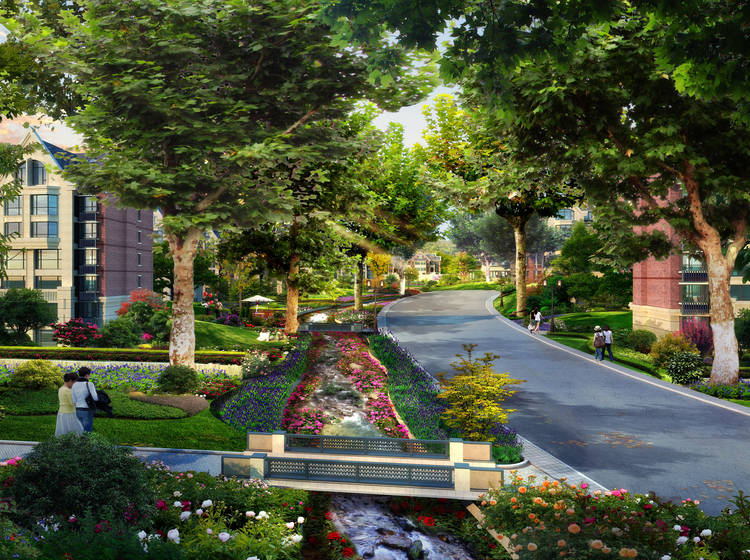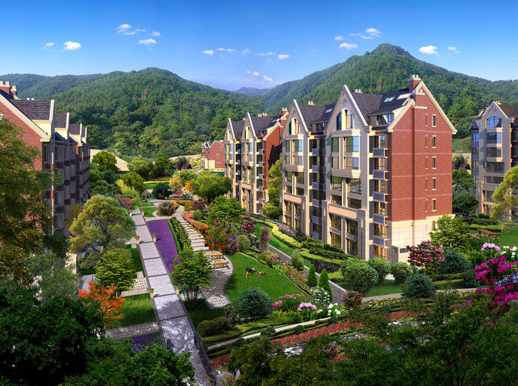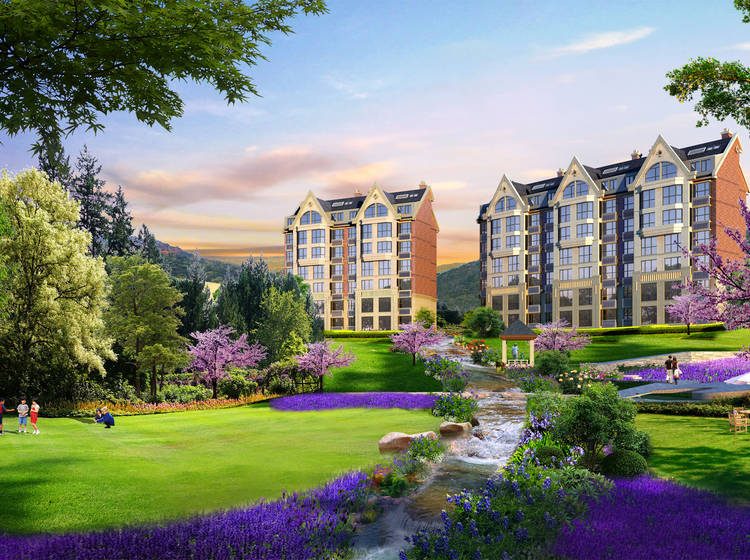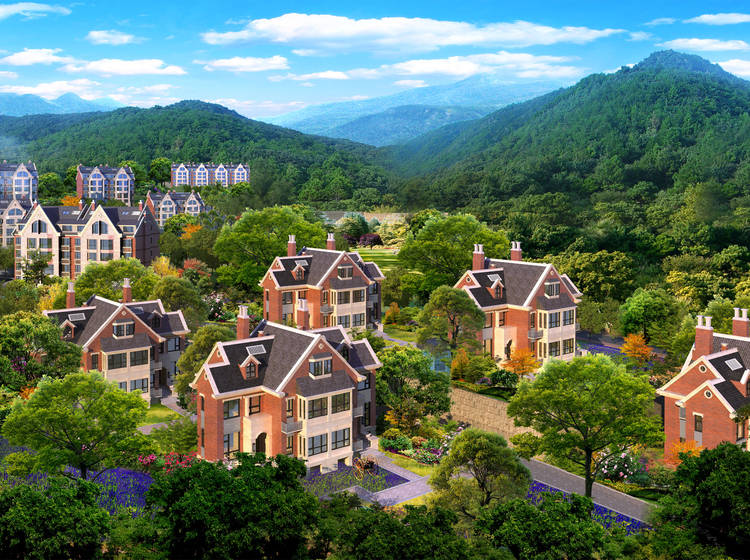 项目背靠燕山龙脉,东北西三面环山,周边为蓟州城市森林涵养区;南侧观湖(翠屏湖水面东西35公里,项目距离翠屏湖直线距离1000米左右)。