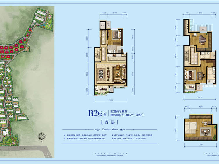 东部景区童趣公园、西部迎宾公园、人行台地花园主出入口、中部车行主出入口、每日生鲜精品超市、蓝湾优品、山谷便利店、室外跳蚤市场、社区服务站、童萌乐园、四季会所、业主餐厅、高定奢品荟、丽舍女子会馆、商务定制空间、贵族儿童成长空间、企业家会所、精品便利店、共享健身舱、观礼草坪、野孩子营地、共享客厅+共享厨房、运动能量场、园区巴士、山间茶室、健身广场。
