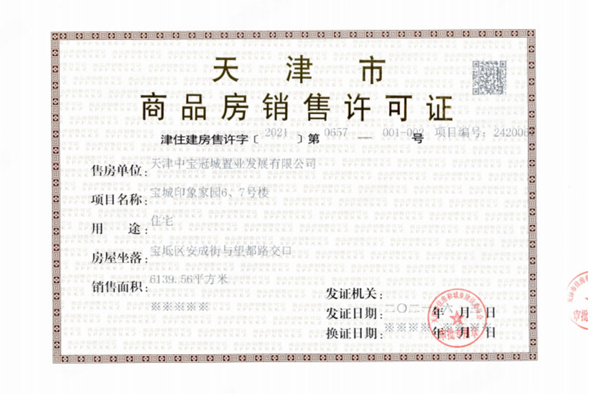 - 津住建房售许字[2021]第0657-001-002号 详情发证时间 2021-06-03绑定楼栋6#、7#证件照片