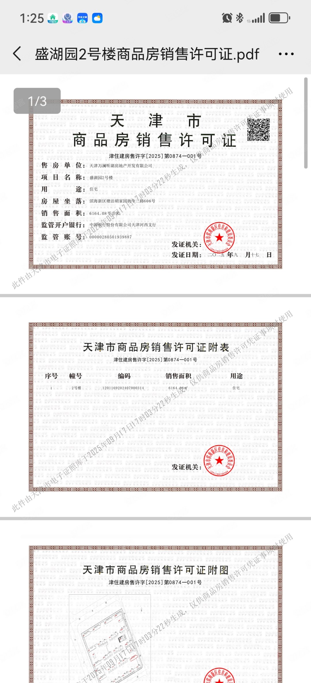 - 津住建房售许字[2025]第0874-001号 详情发证时间 2025-09-17绑定楼栋盛湖园2#证件照片