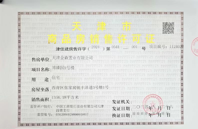 - 津住建房售许字【2024】第0541号 详情发证时间绑定楼栋9#证件照片
