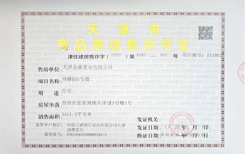 - 津住建房售许字【2024】第0543号 详情发证时间绑定楼栋6#证件照片