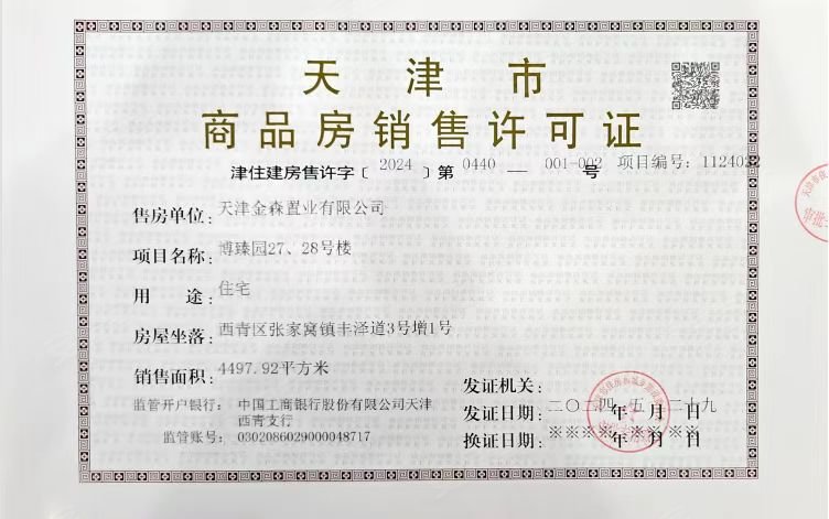 - 津住建房售许字【2024】第0440号 详情发证时间绑定楼栋28#、27#证件照片