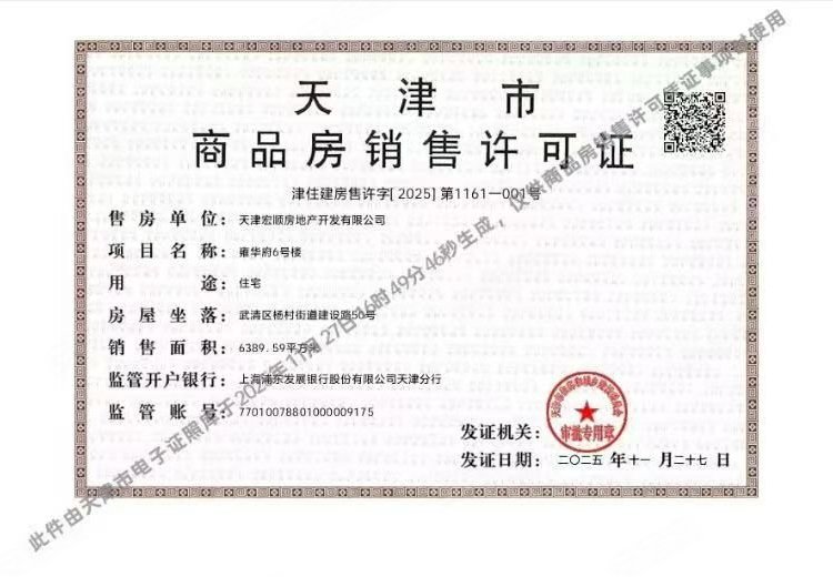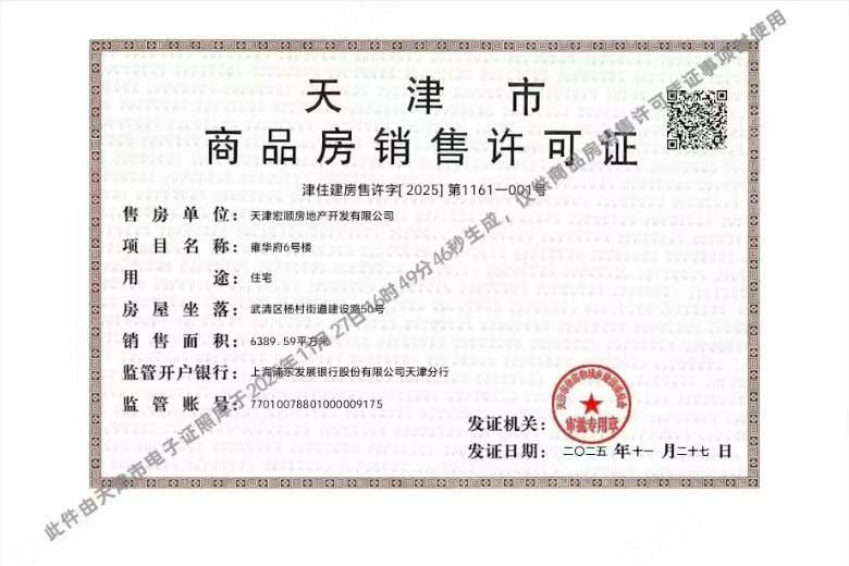 - 津住建房售许字【2025】第1161-001号 详情发证时间 2025-11-27绑定楼栋证件照片