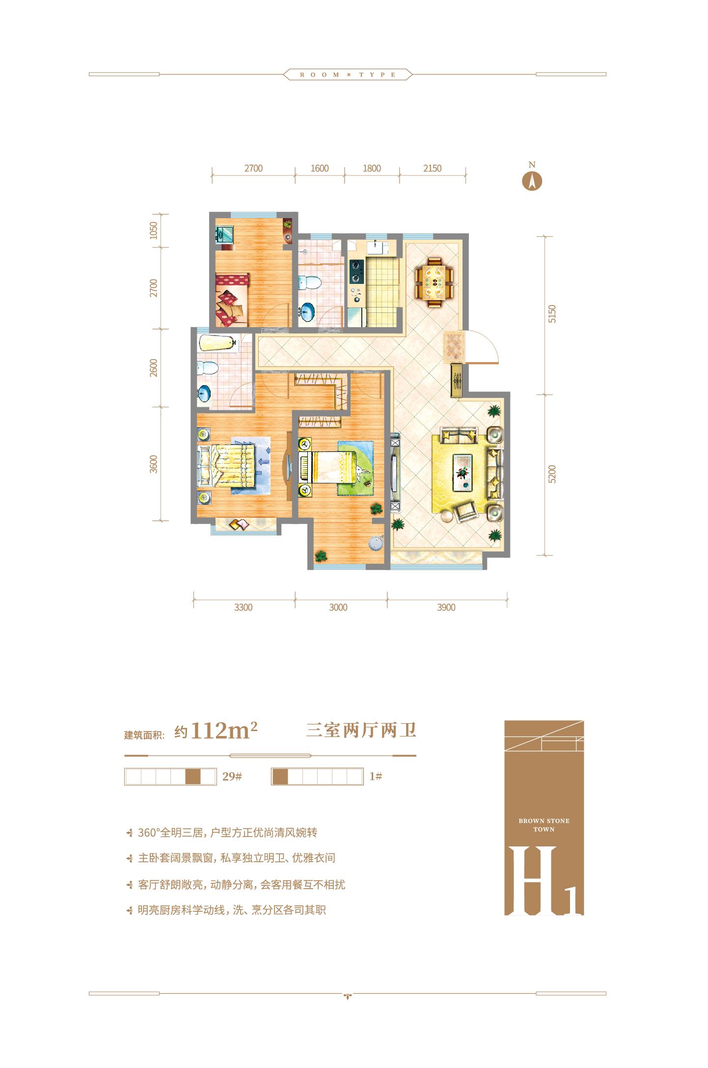 3室2厅2卫-H1-112㎡三室两厅两卫户型
