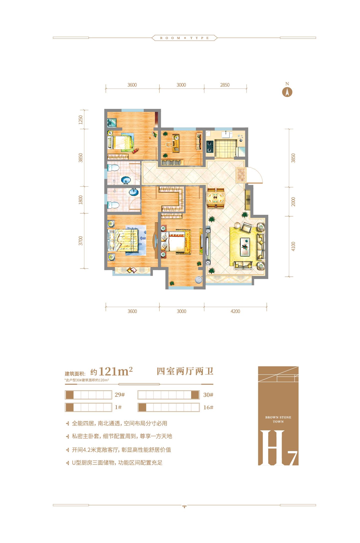 3室2厅2卫-H7-121㎡四室两厅两卫户型