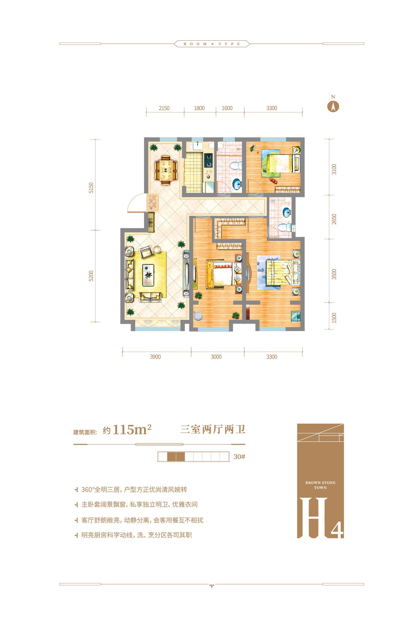 3室2厅2卫-H4-115㎡三室两厅两卫户型