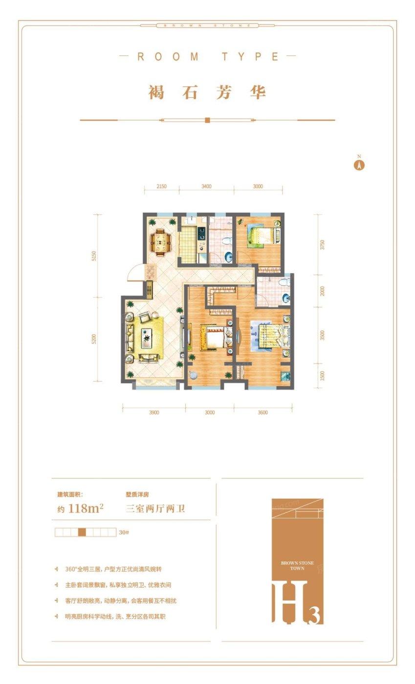 3室2厅2卫-H3-118㎡三室两厅两卫户型