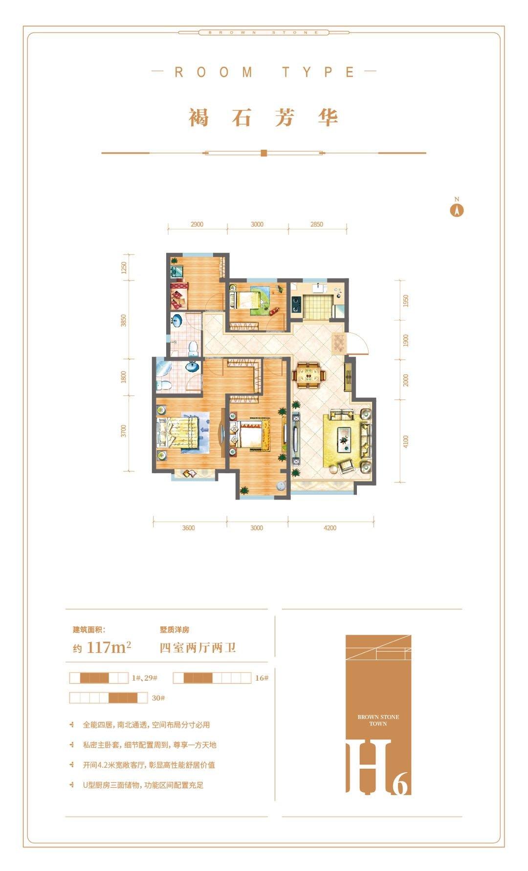 3室2厅2卫-H6-117㎡四室两厅两卫户型