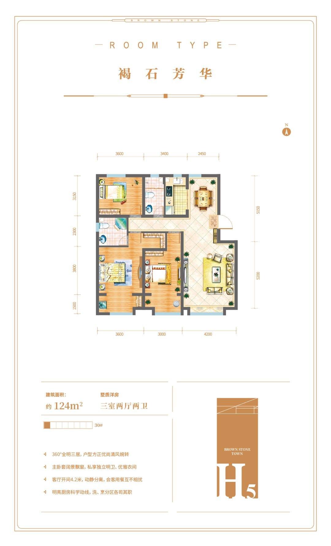 3室2厅2卫-H5-124㎡三室两厅两卫户型
