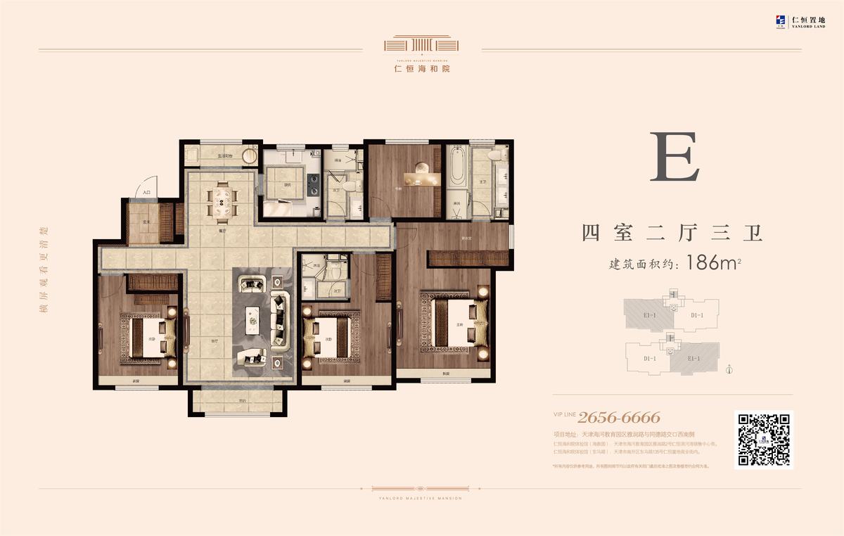 仁恒海和院是仁恒继仁恒海河广场、仁恒河滨花园、仁恒滨河湾、北岸中心、仁恒公园世纪之后在天津打造的第六部作品,海和院选择了仁恒产品系中的“资源系”,也是天津仁恒首座「纯」洋房年代作品。项目领衔海河教育园区,承载天津、南开大学百年荣耀,与城市文脉共辉煌。整体社区采用“新意式”建筑风格,外檐采用6层结构、12道工序,将建筑包裹于时间之中,经久不衰。