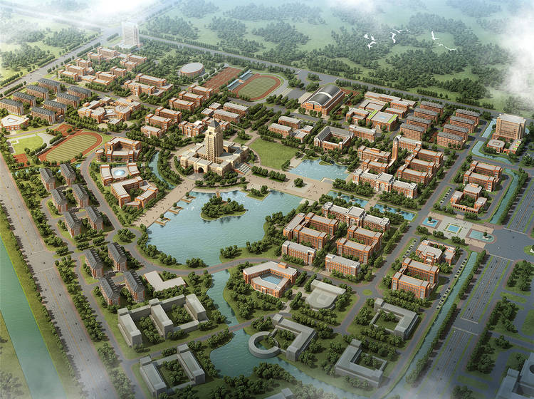 荣盛锦绣学府项目由天津荣臻房地产开发有限公司开发,主要经营范围为房地产开发、商品房销售。项目位于天津市静海区团泊新城西区,四至为:东至健康大道,南至盛湖路,西至南海东道,北至顶湖路。荣盛锦绣学府所在地块出让土地面积146589.7平方米,规划用地性质为居住用地和服务设施用地,其中:居住用地出让土地面积141930.6平方米,容积率为1.2,建筑密度不大于35%,绿地率不小于40%;服务设施用地出让土地面积4659.1平方米,容积率不大于0.8,建筑密度不大于35%,绿地率不小于35%。土地用途为城镇住宅、科教,国有建设用地使用权出让年限为城镇住宅70年、科教50年。