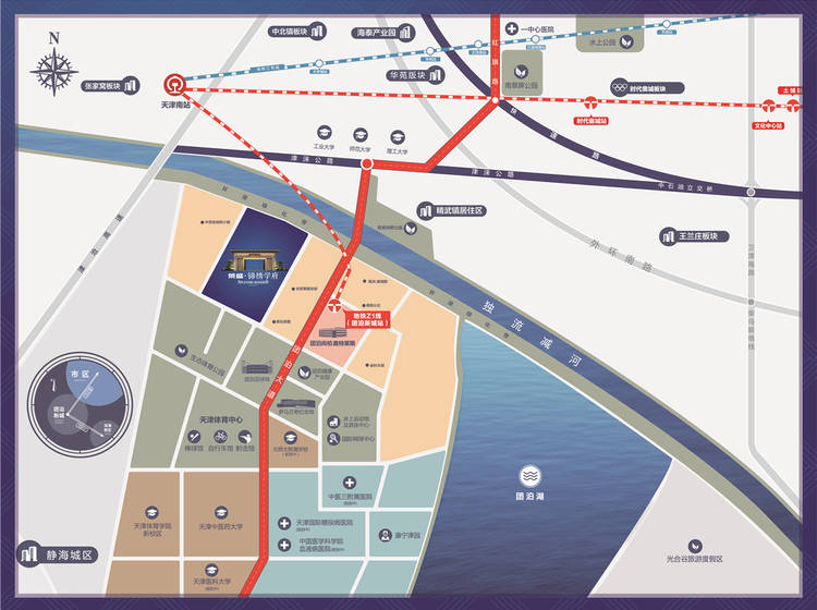自驾:环湖北路、津晋高速、外环线、津仓高速、津文线、团泊大道