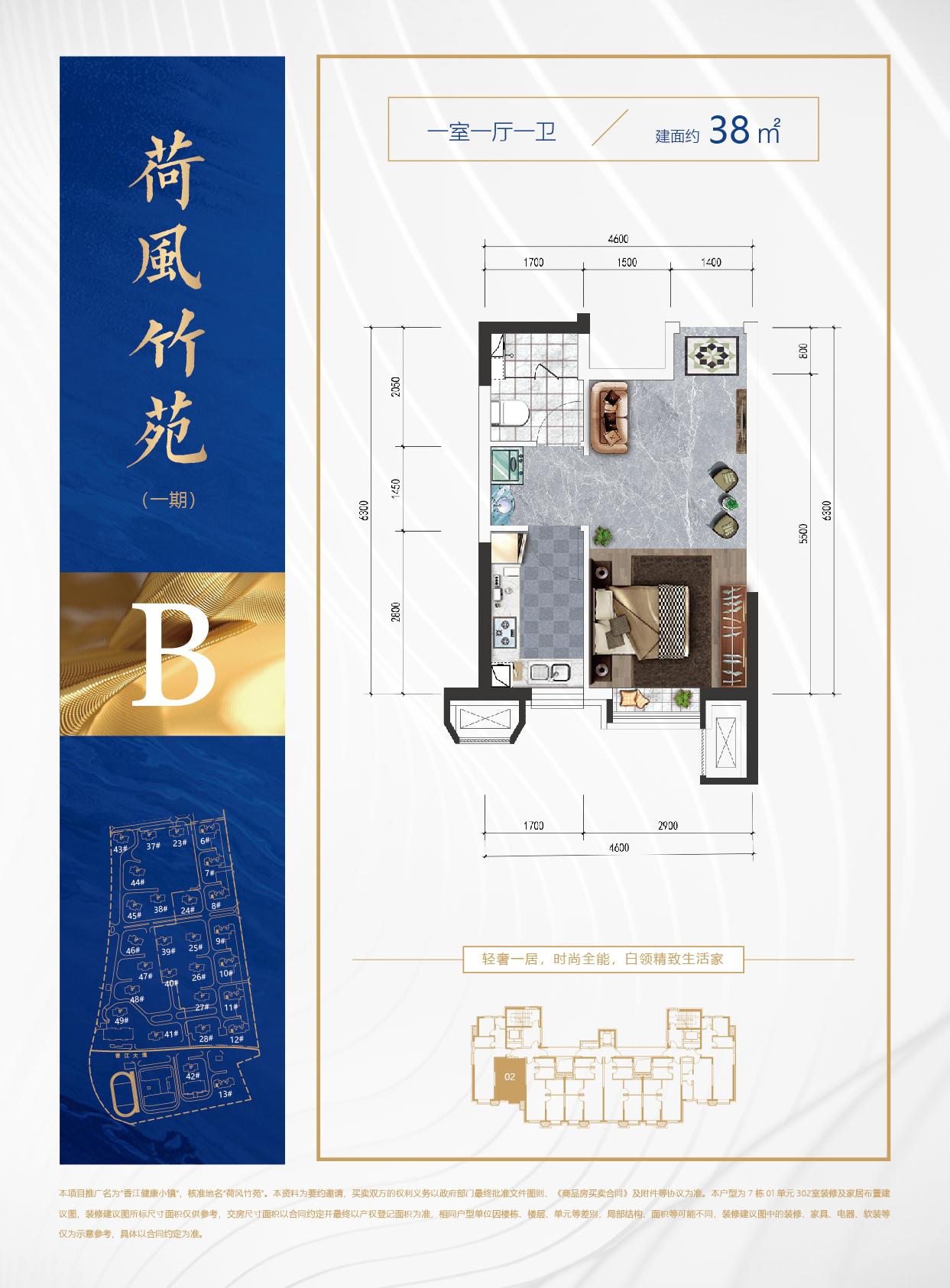 1室1厅1卫-荷风竹苑高层标准层38㎡B户型