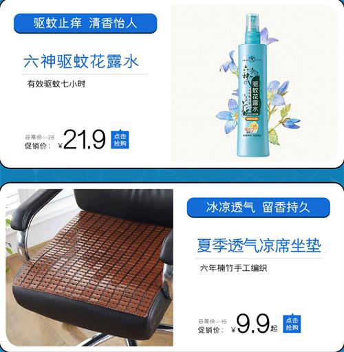 云树商城夏日必备推荐:遇水开花晴雨伞、六神驱蚊花露水、夏季透气凉席坐垫、上海芦荟皂、禧天龙脏衣篮;你的夏天,云树来守护!