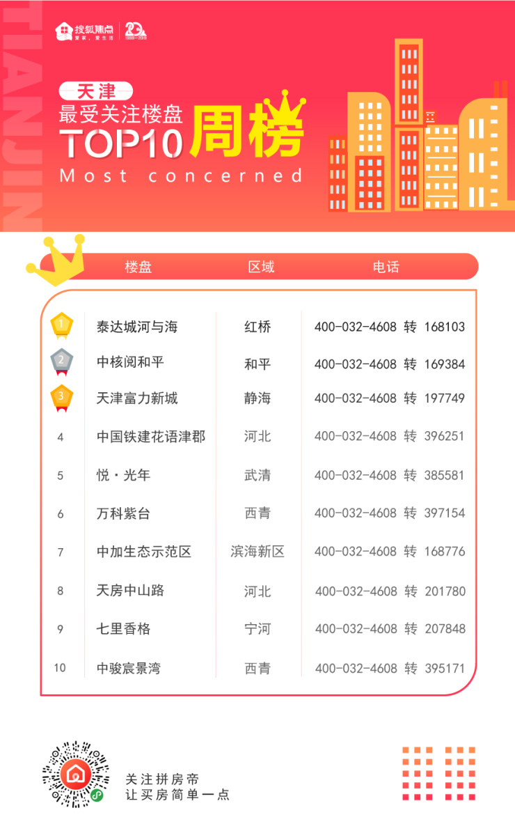 此次热盘榜单不同以往,市区成为买房人关注的重点,10个项目中有4个分别位于和平、河北、红桥。市区的地理位置决定了新房的价格高度,所以市区新房一般都面向改善。市六区的关注度上升,意味着改善需求正在逐步释放。