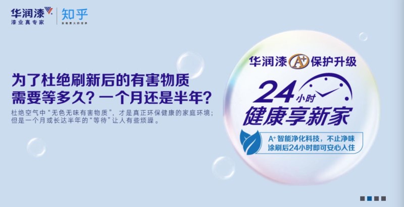 华润漆通过不断的技术更新换代,A+系列产品获得法国室内空气质量检测较高级别A+认证,以及美国绿色卫士室内空气质量金级认证。A+智能净化科技不止净味,更确保涂刷后24小时即可安心入住。自成膜专利技术确保100%无添加,无需额外添加VOC有机溶剂就可使涂料在涂刷后产生自行交联,形成坚韧漆膜,并且具有更强耐污性和耐擦洗性。产品专利技术及高标准环保理念,全面满足大众对于环保健康的更高需求。