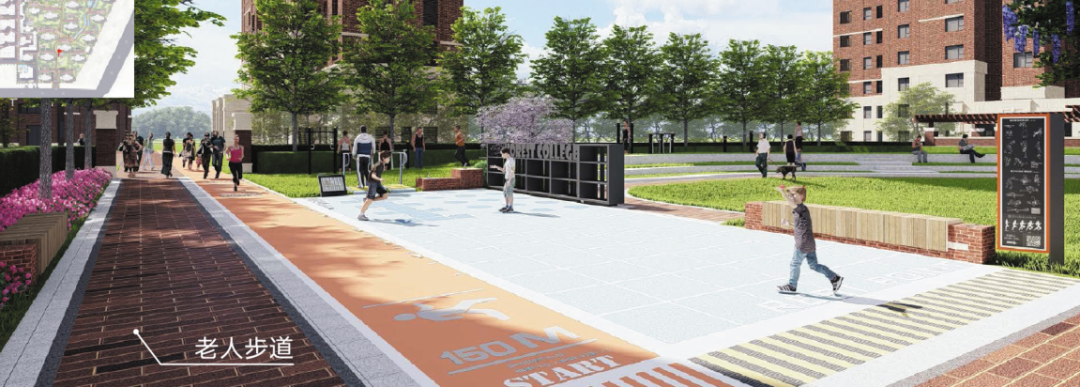 对于园区景观规划,在历经长时间的研发与实地勘测,设计师们根据光照时长及风向等实地检测,实现超大楼间距的同时,因地制宜地进行景观分区布置——6大主题广场和7大社区宅间花园,以约1000m的环形跑道串联;同时在项目内部规划幼儿园、托儿所、老年服务中心等20项基础便捷配套。