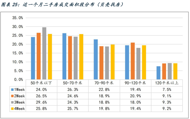 面积段方面,70㎡以下的低总价房源最走俏,这部分房源的购房者多数可能为了落户、本地刚需;50㎡以下的房源在4月最后一周成交占比减少了3.81%,而90-120㎡反而增长了1.44%;120㎡以上的,从去年8月开始,一直占比6-7%,但4月占比能达到9%,说明环城次新房和市区改善类二手房需求量也上涨。