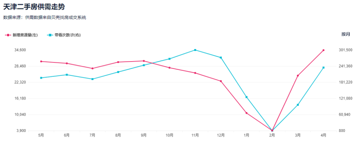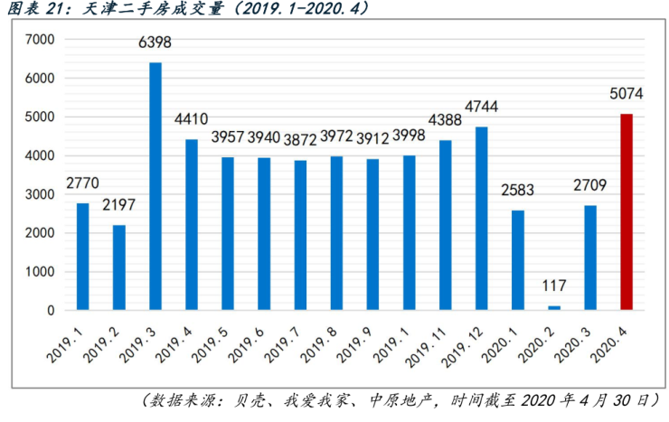 从数据来看,天津4月份二手房市场有所回暖,迅猛的是成交量,并非价格。