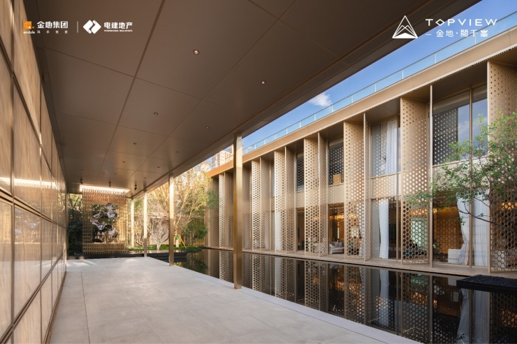 金地·阅千峯园区空间设计以密斯大师的德国馆为灵感,以室内精装的态度设计园区空间,包含园林、地下车库、地下大堂在内,让精致感出现在方方面面。