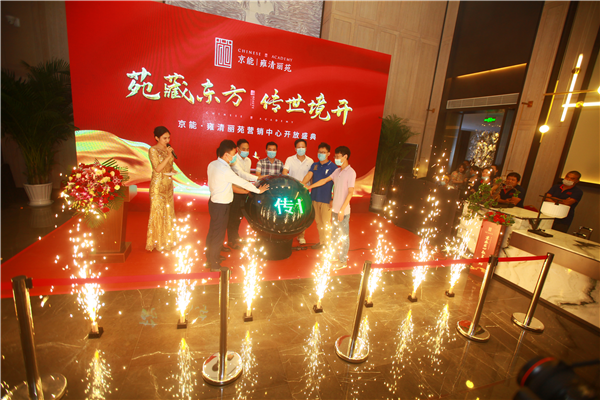 京能置业(天津)公司的各位领导及受邀嘉宾开启“启动球”,为营销中心正式开放揭幕。随后主持人就京能·雍清丽苑的区位配套、设计理念、人文传承及产品等向各位媒体朋友进行了深度解析。