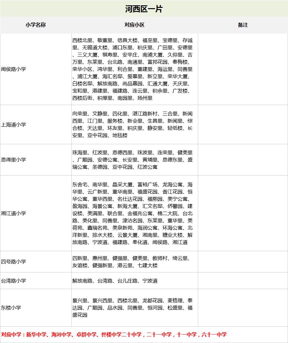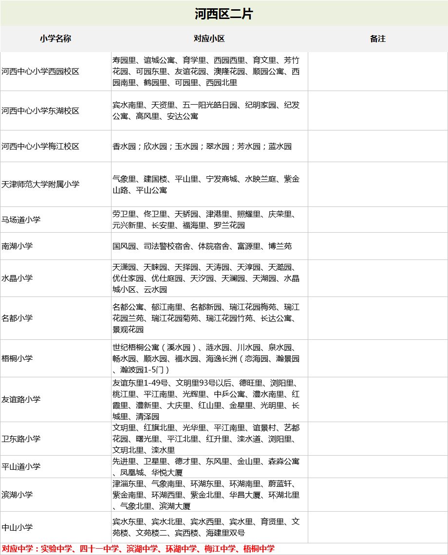 2019天津较新重点小学学区房划片一览表